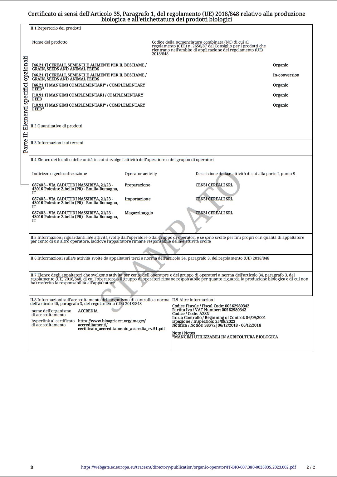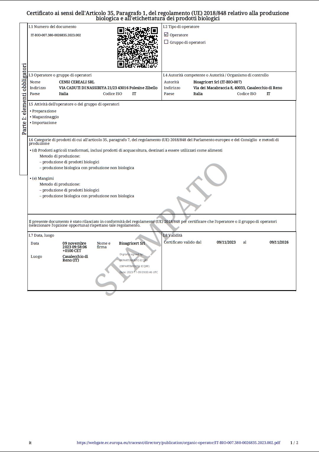 Censi Cereali s.r.l. - Polesine Zibello (PR) - ITALY - VAT : IT00562980342